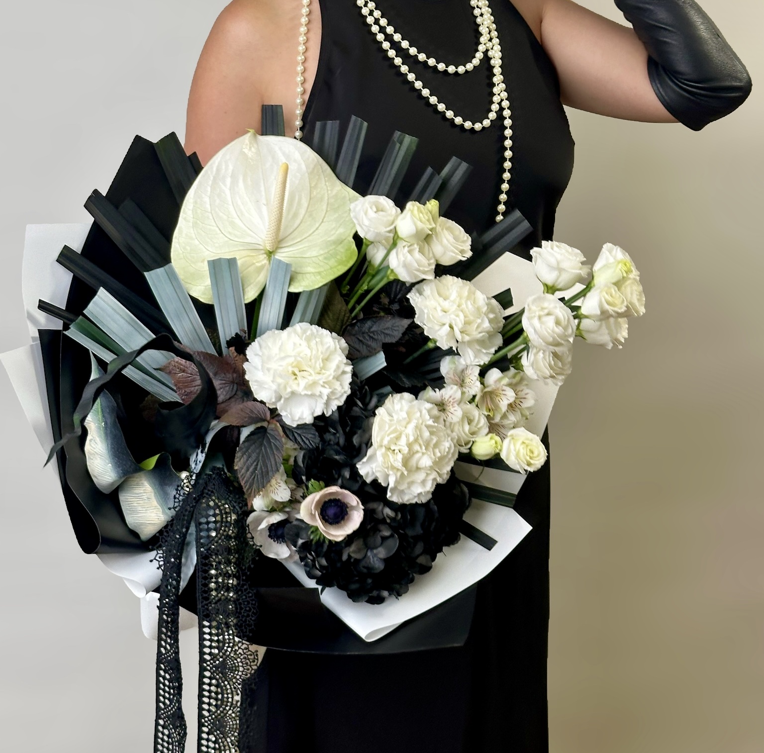 Букет с антуриумом, гортензией и герберой 0165